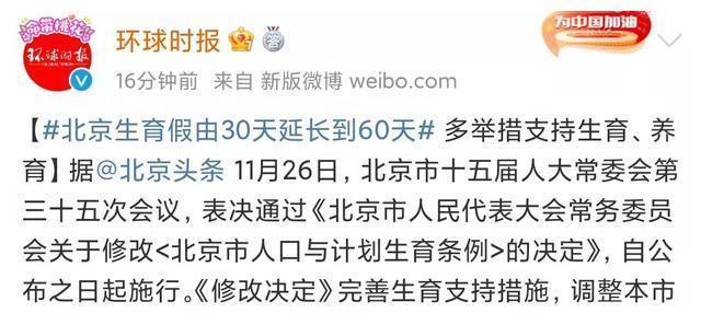 摘要:近几日,北京、上海纷纷修改了《 人口与计划生育条例》的决定, 将生育假由30天延长到60天,女方除享受国家规定的产假外,享受延长生育假六十日,男方享受陪产假十五日。 同时,